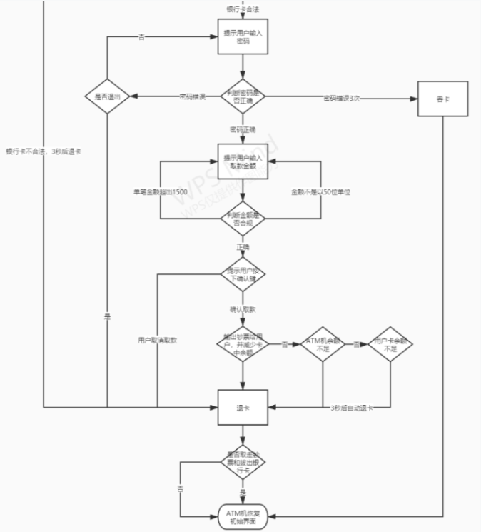 1.atm取钱机按流程分析法来进行测试练习