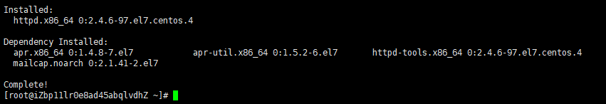 2、安装完成后,再用 rpm -qa |grep httpd,查看apache是否已安装成功