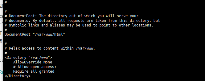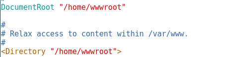 同时还需要将约第124行用于定义目录权限的参数Directory后面的路径也修改为/home/wwwroot。配置文件修改完毕后即可保存并退出。