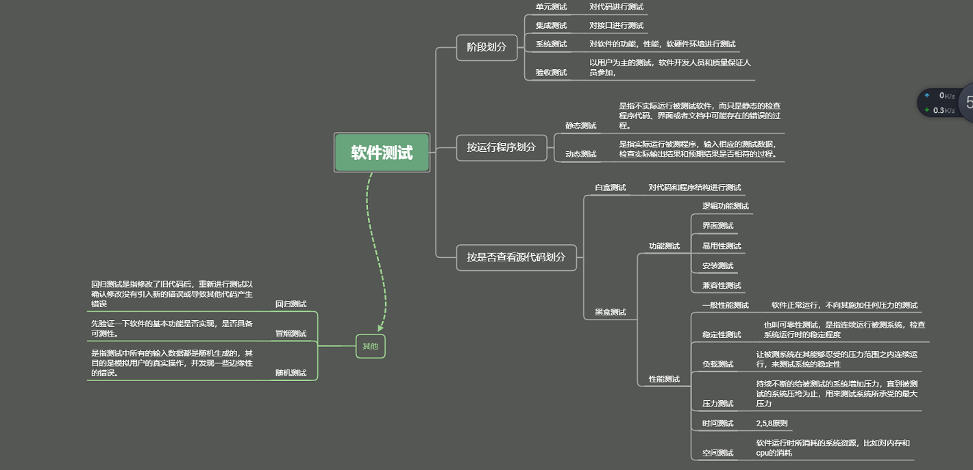 1 测试伴随着软件的整个生命周期,例如,在需求分析结束后就可以进行需求分析测试。