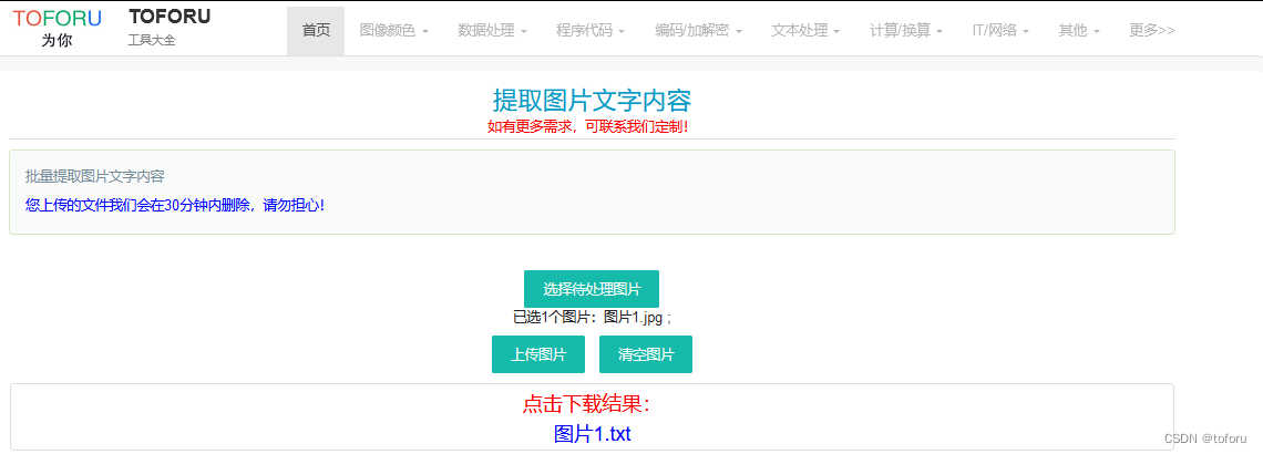 在线文字识别,OCR识别,提取图片文字内容,图像转文字教程,批量免费|TOFORU在线工具 软件定制