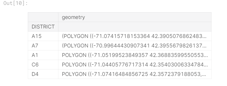 # GeoDataFrame with geographical boundaries of Boston police districts