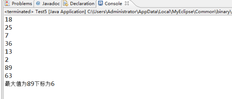 5.在一个有8个整数(18,25,7,36,13,2,89,63)的数组中找出其中最大的数及其下标。(知识点:数组遍历、数组元素访问) [必做题]?