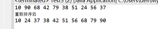 package jtzy426; import java.util.Arrays; import java.util.Random; public class Test5 { /** * @param args */ public static void main(String[] args) { // TODO Auto-generated method stub int []a=new int[10]; Random r=new Random(); for (int i = 0; i < a.length; i++) { a[i]=r.nextInt(101); } for (int i = 0; i < a.length; i++) { System.out.print(a[i]+" "); } System.out.println("\n"+"重新排序后"); Arrays.sort(a); for (int i = 0; i < a.length; i++) { System.out.print(a[i]+" "); } } }