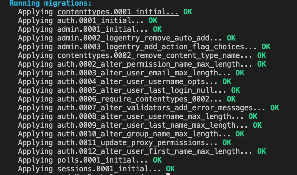 这里的数据需要提前创建,否则就回报错:(1049, "Unknown database 'polls'")