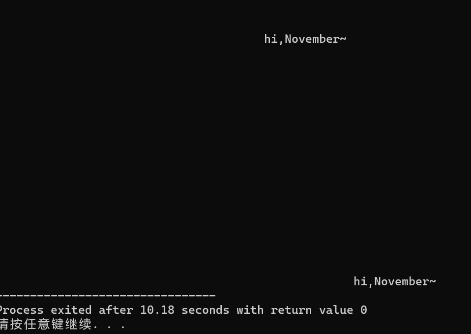 作用:在频幕上随机打印hi,November~