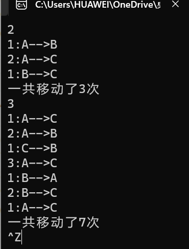 printf("一共移动了%d次\n",a);