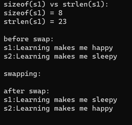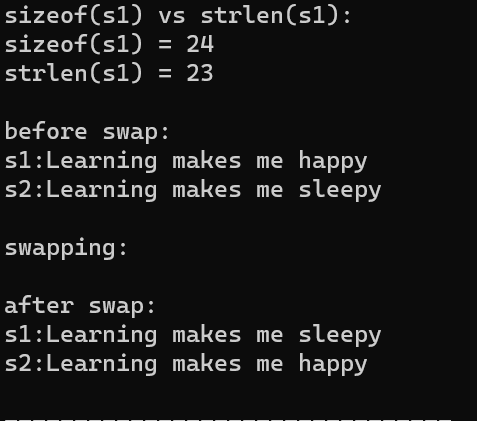 数组s1大小是24,sizeof计算的是数组的长度,strlen计算的是数组内'\0'以前的元素个数