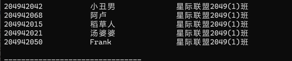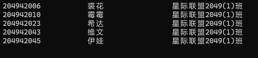 printf("%-20s%-20s%-20s\n",st[j].number,st[j].name,st[j].clas_now);