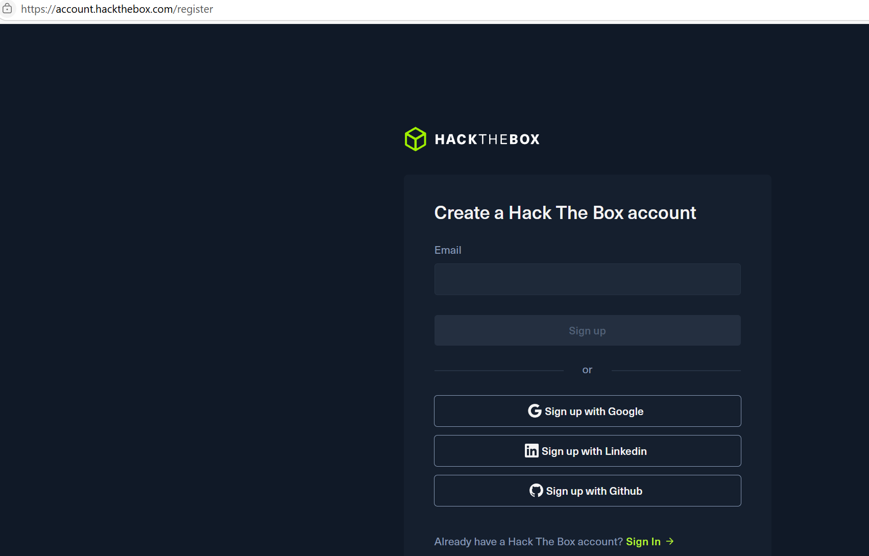 我们在hack the box的网站下进行注册,这里会需要我们的邮箱,或者github账号
