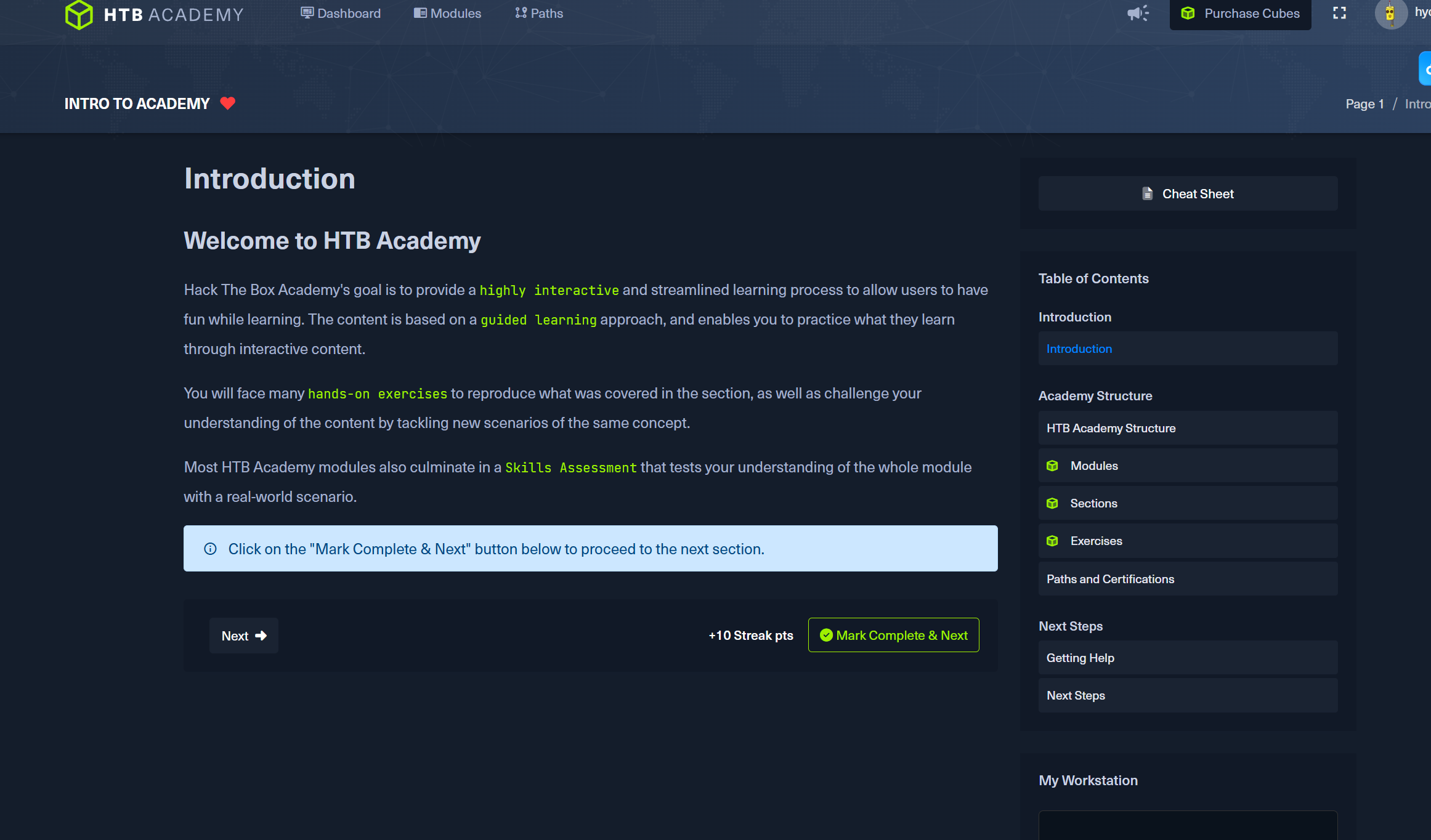 您现在已经熟悉了 HTB Academy 的核心方面,可以开始您的学习之旅了!
