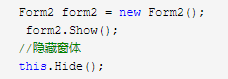 private void Register_Click(object sender, EventArgs e) { //注册 Form3 form3 = new Form3();//实例化对象 form3.Show();//显示窗体 //隐藏窗体 this.Hide();