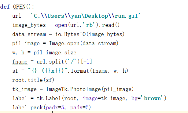 今天在使用ImageTk.photoImage()显示图片时,当把包含该函数放在自定义函数里时,不能正常显示,移到函数为又可正常显示,所以想到可能是变量不是全局性的缘故,改为全局变量后果然可正常显示,下面贴出前后代码对比