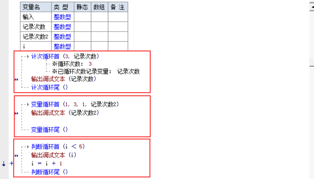2.变量循环首 计次循环首的升级版本。能控制每次增加的值 同时可以进行递减循环(python: for i in range(n,step))
