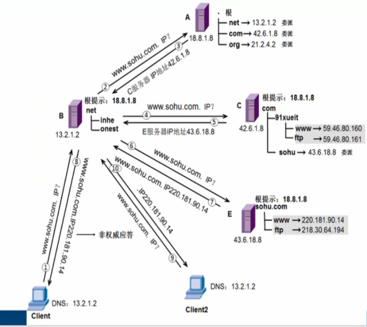 客户端让服务器解析域名的这一个过程是递归,而服务器一步一步查找的过程叫迭代。