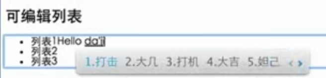 <body> <!-- contenteditable属性应用 --> <h1>可编辑列表</h1> <ul contenteditable="true"> <li>列表1</li> <li>列表2</li> <li>列表3</li> </ul> </body>