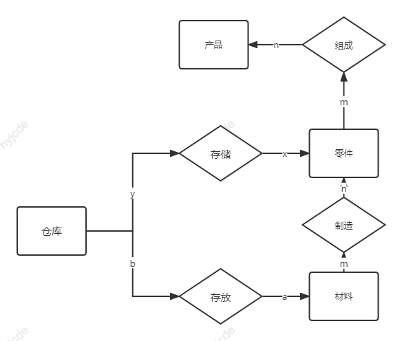 某工厂生产若干产品,每种产品由不同的零件组成,有的零件可用在不同的产品上。这些零件 由不同的原材料制成,不同零件所用的材料可以相同。这些零件按所属的不同产品分别放在仓库中, 原材料按照类别放在若干仓库中。请用E-R图画出此工厂产品、零件、材料、仓库的概念模型。