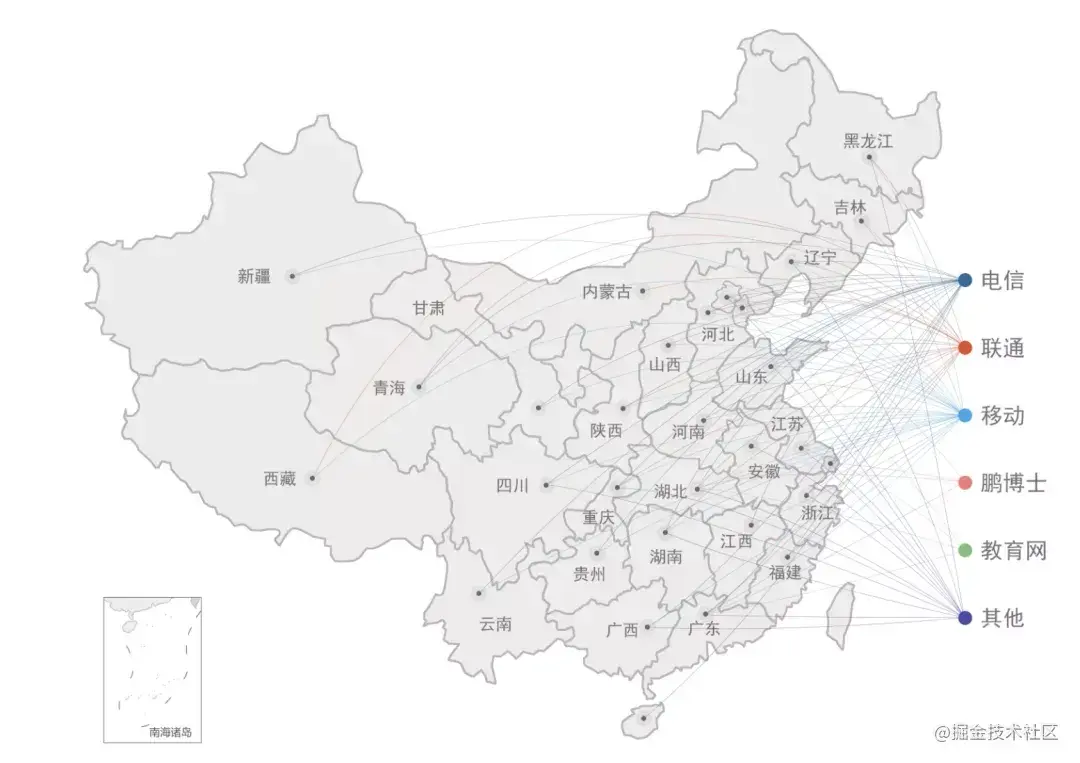 图:阿里云在中国大陆的CDN节点的分布情况