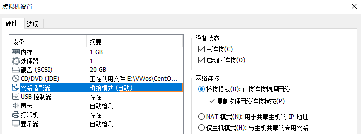 1.首先设置vm网路,【虚拟机】-【设置】-【网路适配器】-【桥接模式】设置完成确定。