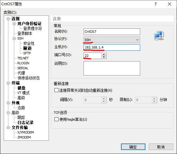1.以Xshell为例,新建连接,协议为SSH,主机写刚刚的ip地址,端口号默认不动(因为 Xshell 默认的端口是 22,如果22不行,在linux命令行上输入 sudo ufw allow 22 ,表示开放 22 这个端口)