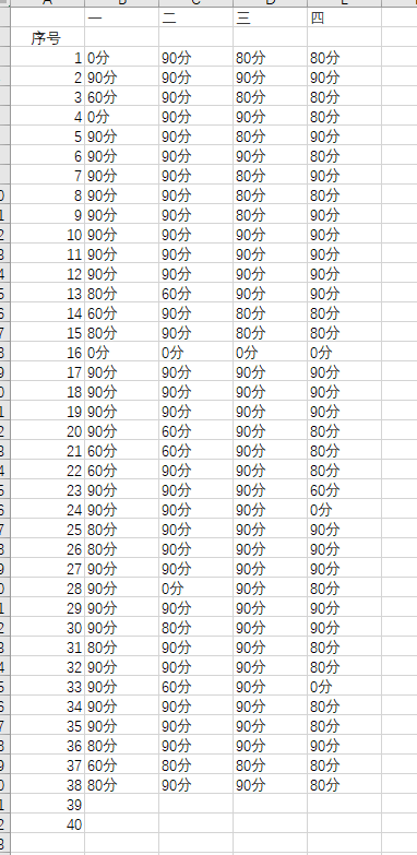 将优秀,良好,合格,不合格 替换为90分,80分,60分,0分