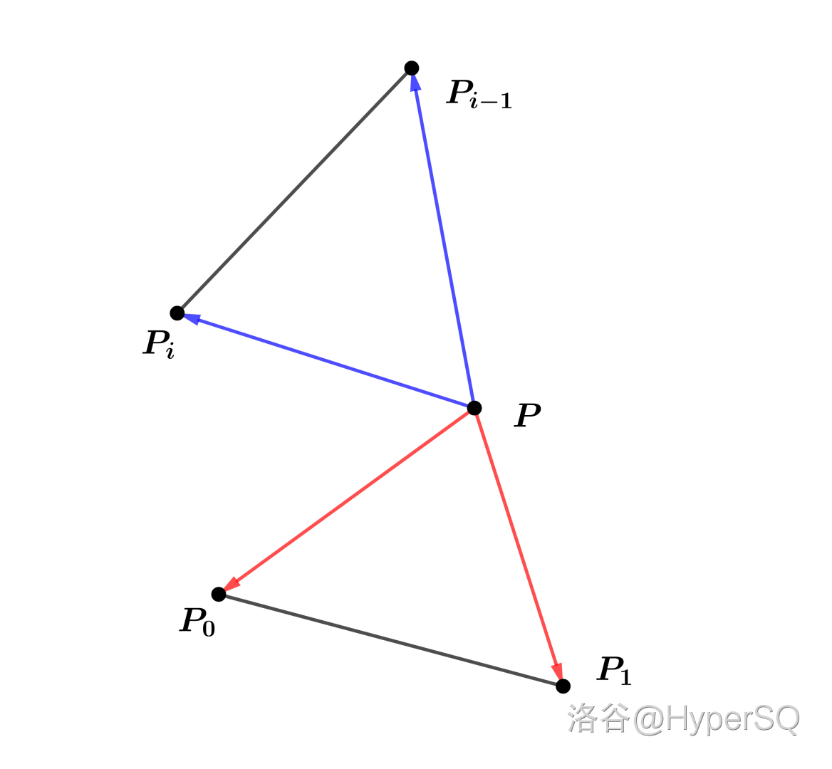 题意:给出一个凸多边形,点按 \(0\) ~ \(n-1\) 逆时针编号,现在有一个多边形内的随机点 \(P\) ,对于任意的 \(\triangle PP_iP_{i-1}\) 均满足