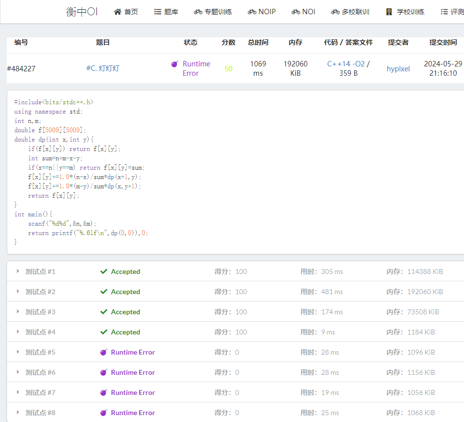 同理,只剩绿灯的总期望就是\(\frac{m}{n+1}\),两个加起来就是答案