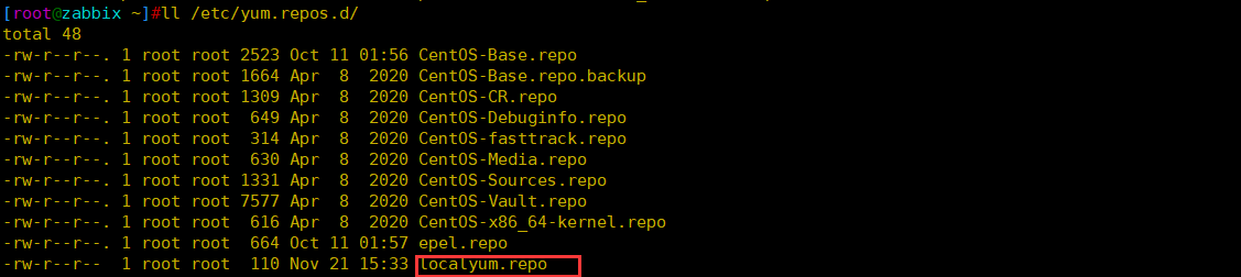 -rw-r--r-- 1 root root 105 Oct 30 02:03 localyum.repo