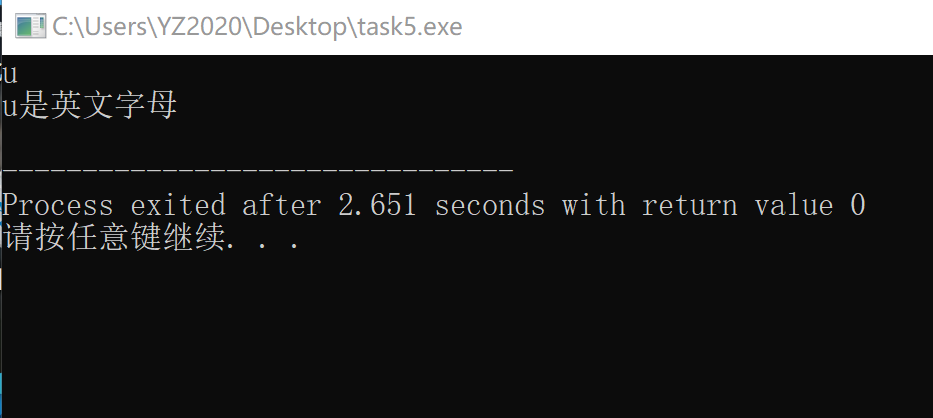 // 判断字符类型 #include <stdio.h> int main() { char x; x = getchar(); if(x>='0'&&x<='9') // 待补足①,判断x是数字字符表达式 printf("%c是数字字符\n", x); else if( x >= 'a' && x <= 'z'|| x >= 'A' && x <= 'Z') // 待补足②,判断x是大写或小写英文字母的表达式 printf("%c是英文字母\n", x); else printf("%c是其它字符\n", x); return 0; }
