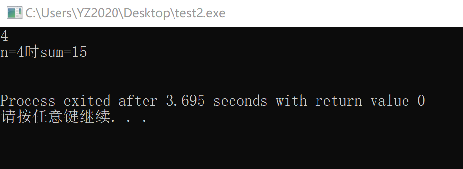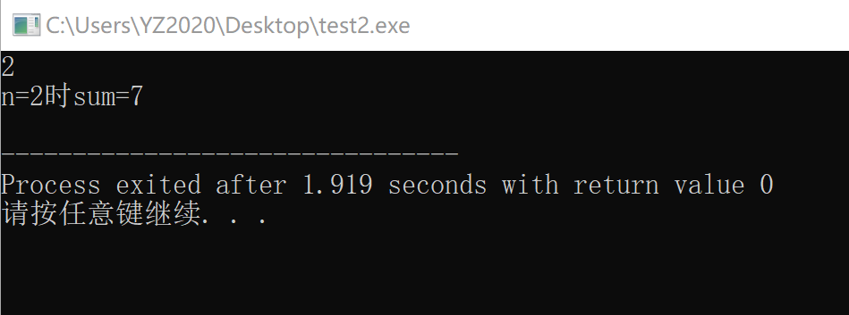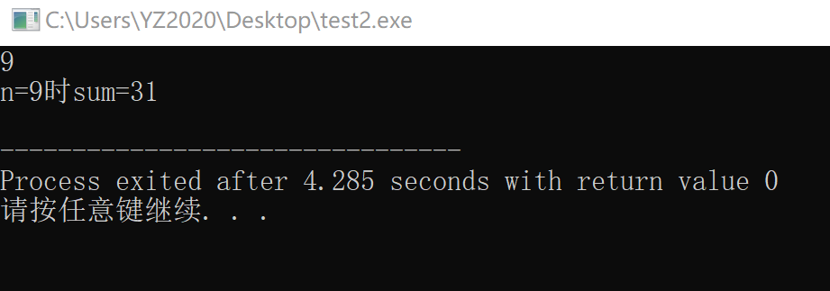 #include<stdio.h> int main() { int a, i, sum,n; sum=1; i=1; a=1; scanf("%d",&n); if(n<='0'&&n>='10') { printf(" input wrong\n"); } else while(a<=n){ a=a*2; sum= sum+a; i++; } printf("n=%d时",n);printf("sum=%d\n",sum); return 0; }