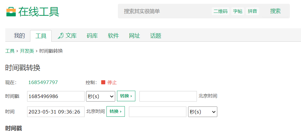 2、时间戳在线转换工具,地址 https://tool.lu/timestamp