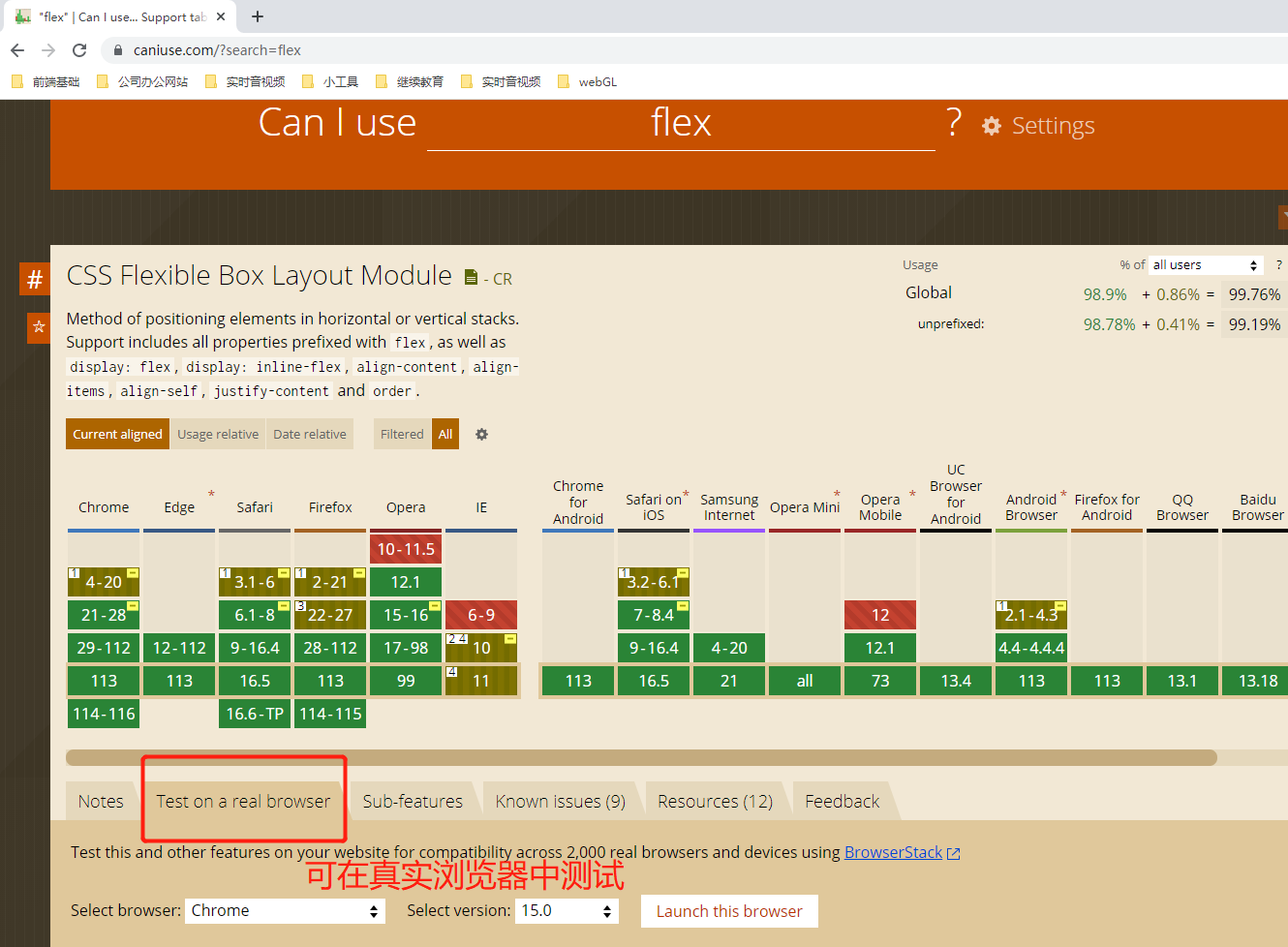 以flex为例子,改网站不但可以看到各版本的兼容性,更可以在真实的不同版本的浏览器中进行实测,但是免费使用时间较短
