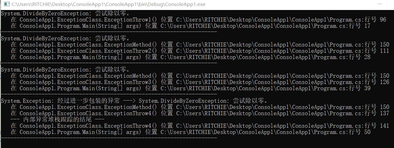 119 throw new Exception("经过进一步包装的异常", ex);