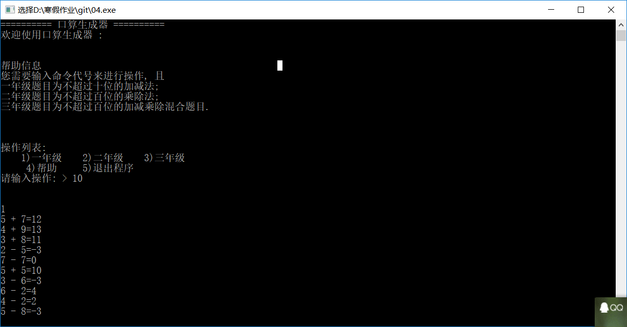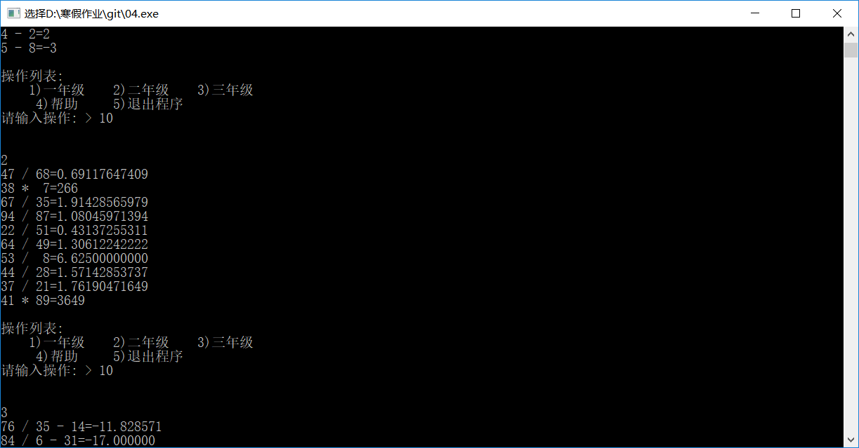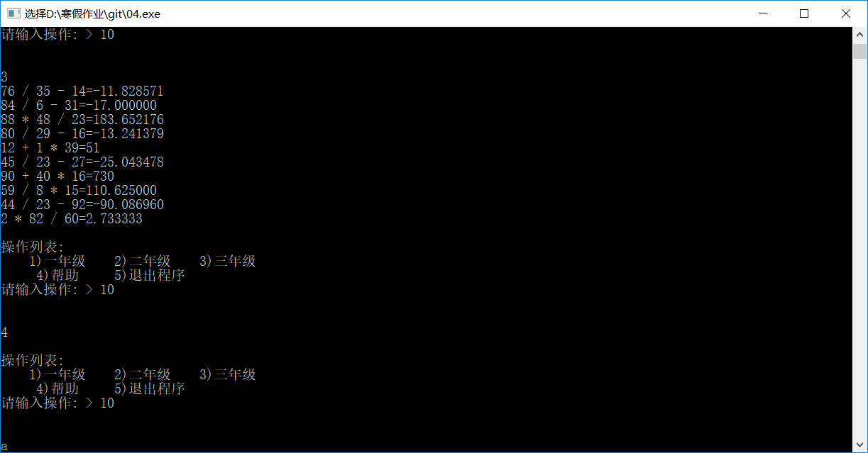 | 这个作业的目标 | 使用上次作业的菜单框架,并在其基础上增加各年级题目的答案函数 |