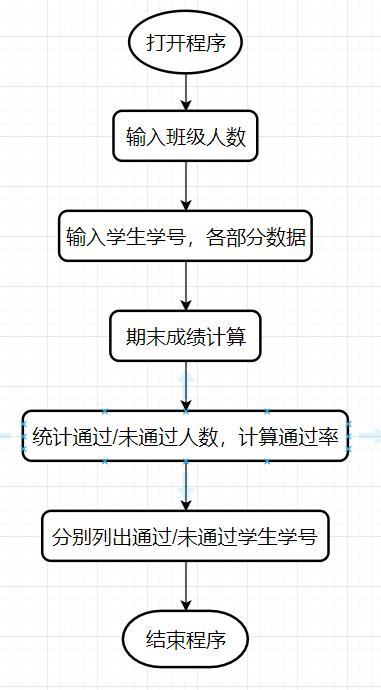 在输入完学生数据信息后一键生成各位学生的期末成绩,班级期末成绩平均分,班级通过/未通过人数,计算通过率,分别统计并展示通过/未通过学生学号。