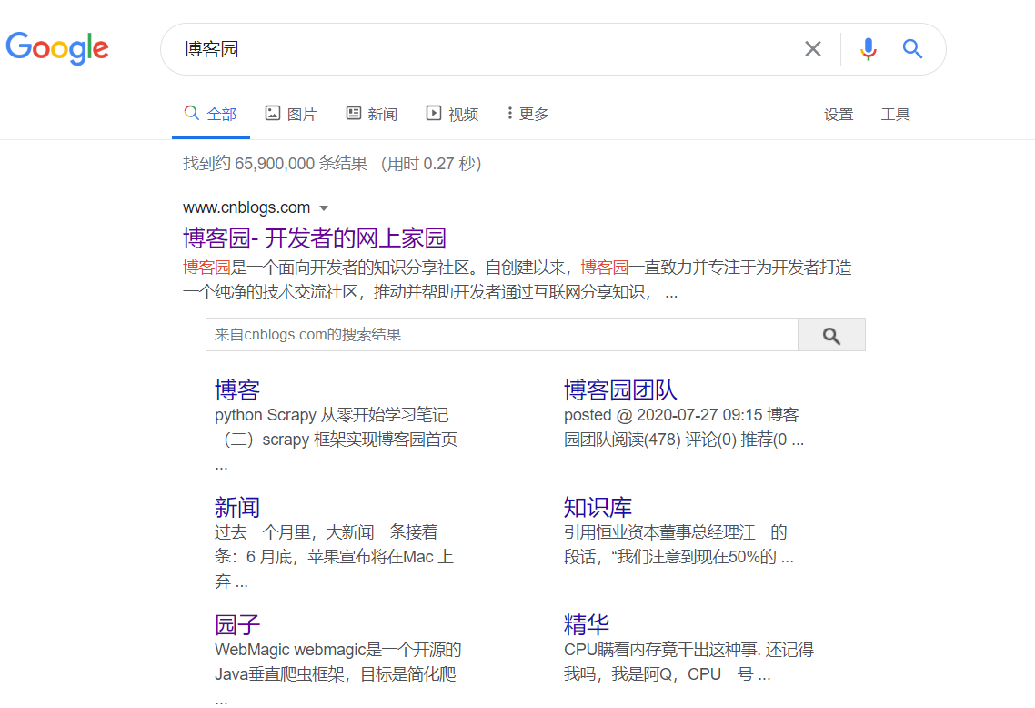 然而,我在谷歌搜索框中输入“博客园”,则能够正常显示查询结果。