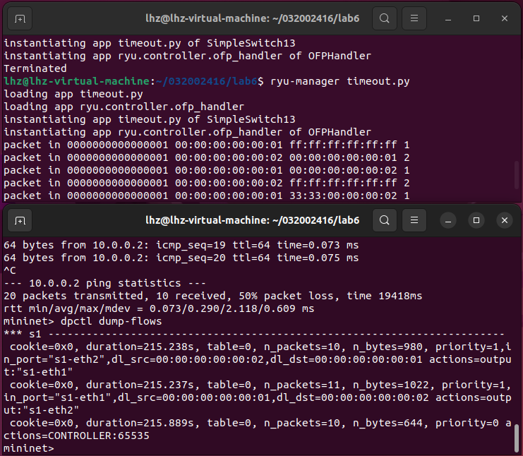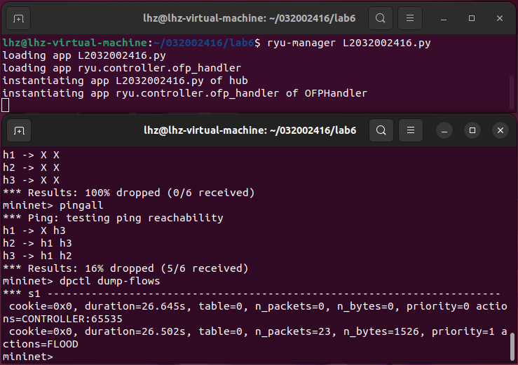 - 能够理解RYU控制器实现软件定义的集线器原理;