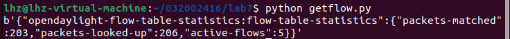 ryu-manager ryu.app.simple_switch_13 ryu.app.ofctl_rest以及未安装curl通过报错信息进行安装sudo apt install curl。 - 通过本次实验能够编写程序调用OpenDaylight REST API实现特定网络功能和编写程序调用Ryu REST API实现特定网络功能。虽然不同控制器虽然API不同,但是大多数功能是类似的,只需要思路正确,查阅相关文档,就能够顺利实现功能。