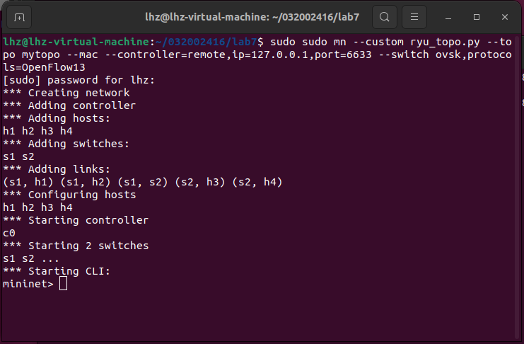 sudo sudo mn --custom ryu_topo.py --topo mytopo --mac --controller=remote,ip=127.0.0.1,port=6633 --switch ovsk,protocols=OpenFlow13