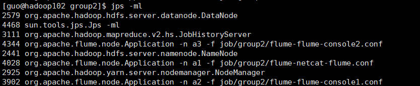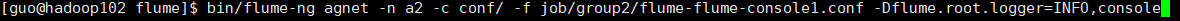 bin/flume-ng agnet -n a2 -c conf/ -f job/group2/flume-flume-console1.conf -Dflume.root.logger=INFO,console