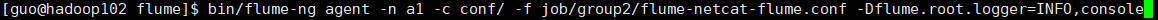 bin/flume-ng agent -n a1 -c conf/ -f job/group2/flume-netcat-flume.conf -Dflume.root.logger=INFO,console