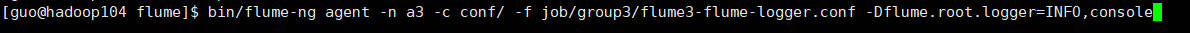 bin/flume-ng agent -n a3 -c conf/ -f job/group3/flume3-flume-logger.conf -Dflume.root.logger=INFO,console