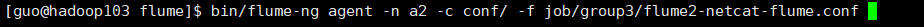 bin/flume-ng agent -n a2 -c conf/ -f job/group3/flume2-netcat-flume.conf