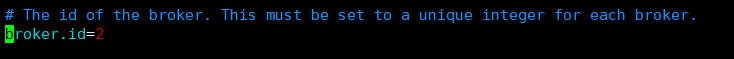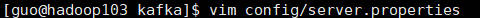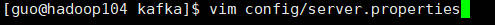 4.分别在 hadoop103 和 hadoop104 上修改配置文件/opt/module/kafka/config/server.properties中的 broker.id=1、broker.id=2。broker.id 不得重复,整个集群中唯一。