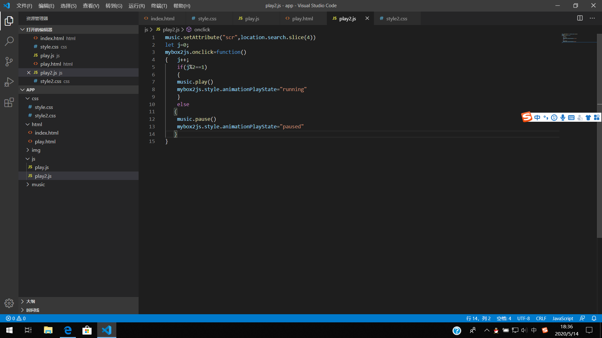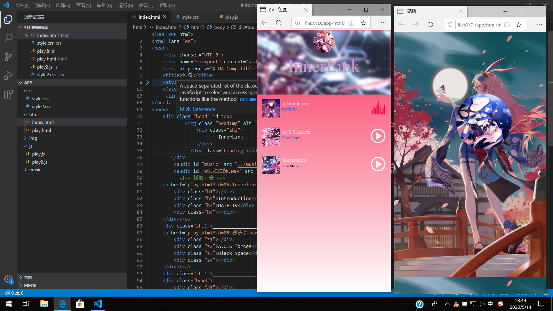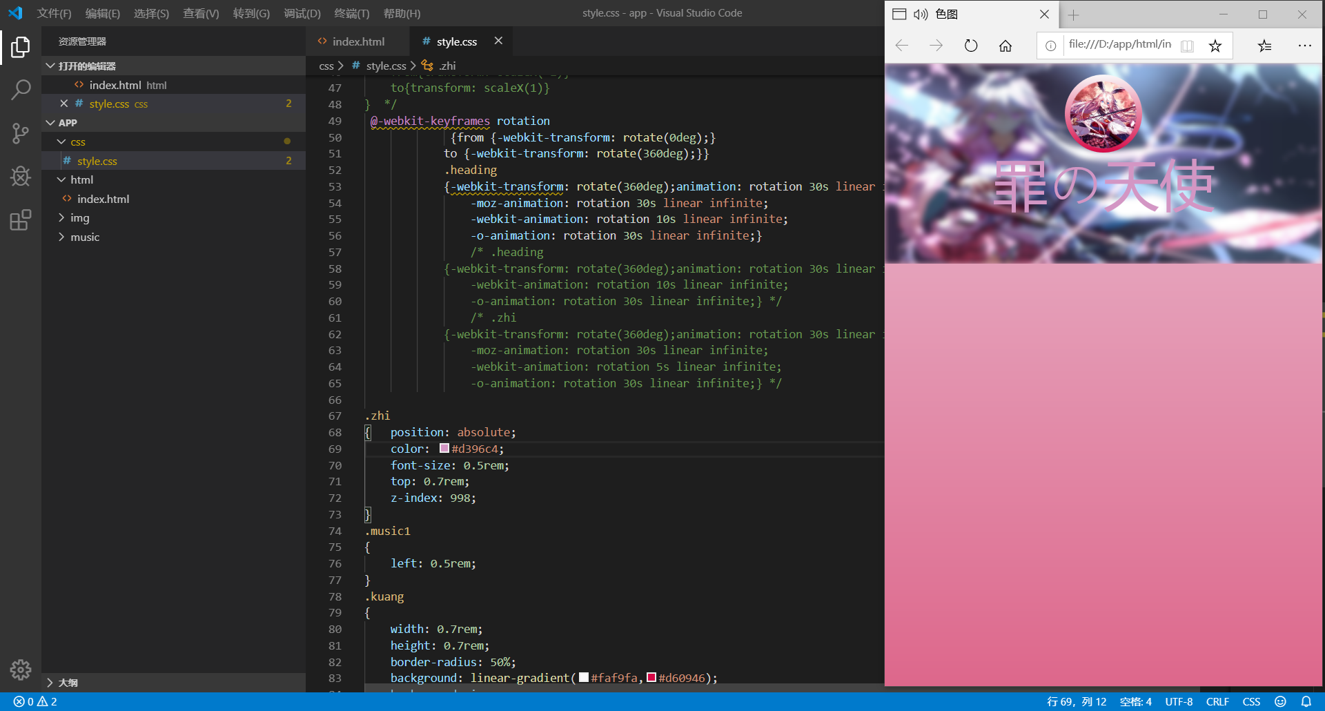 并在此基础上,通过简单的js设定,完成音乐播放和暂停以及图片的旋转与暂停。