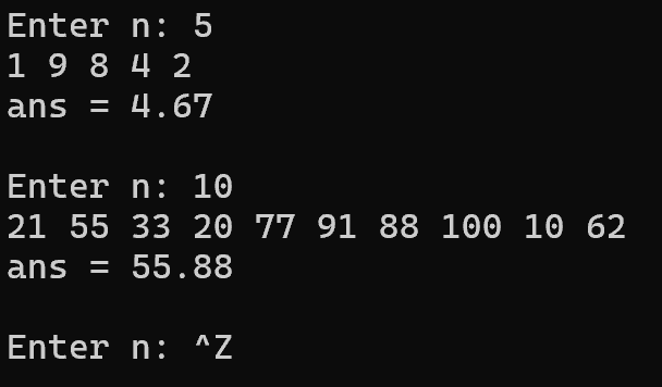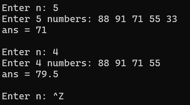 while(printf("Enter n: "), scanf("%d", &n) != EOF) {