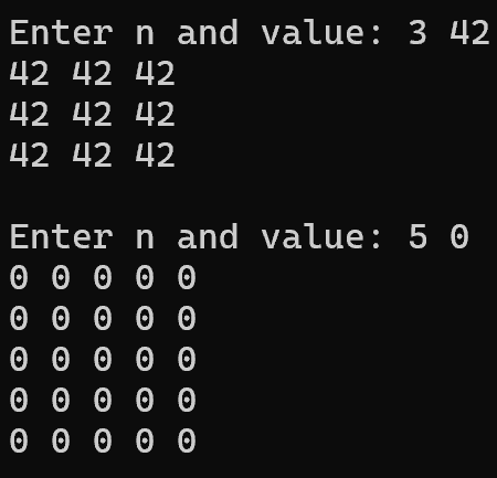 while(printf("Enter n and value: "), scanf("%d%d", &n, &value) != EOF) {