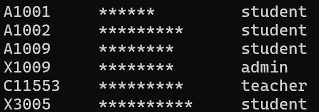 void output(Account x[], int n); // 输出账户数组x中n个账户信息,其中,密码用*替代显示