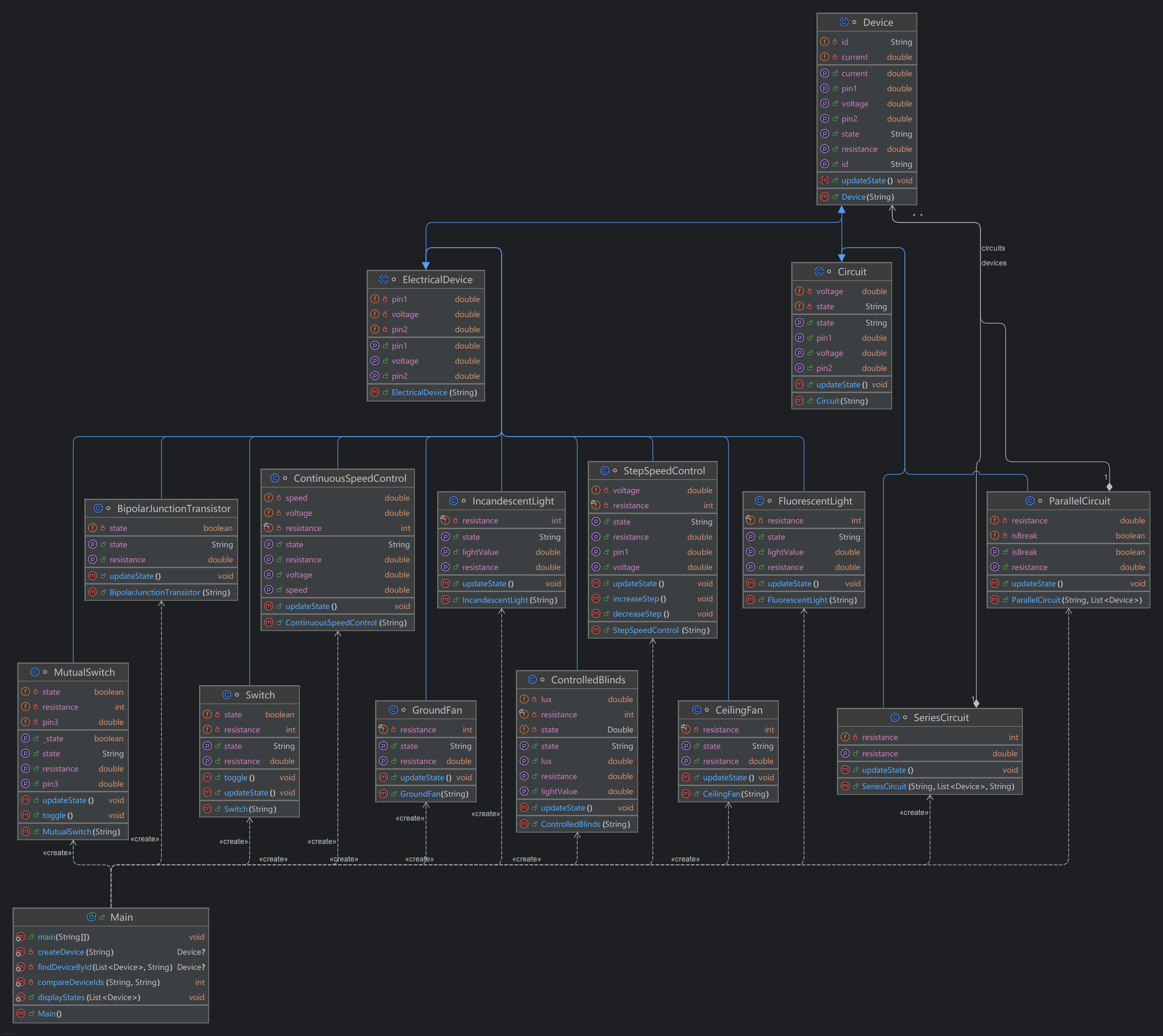 首先,在设备类型和控制功能的复杂性方面,我认识到每种设备都有其独特的行为模型。这要求我在设计时充分考虑设备之间的交互和状态管理,特别是互斥开关和调速器的逻辑实现。同时,我也体会到细致的需求分析对于系统设计的重要性,只有明确每个设备的功能和预期行为,才能构建出一个高效且准确的模拟系统。