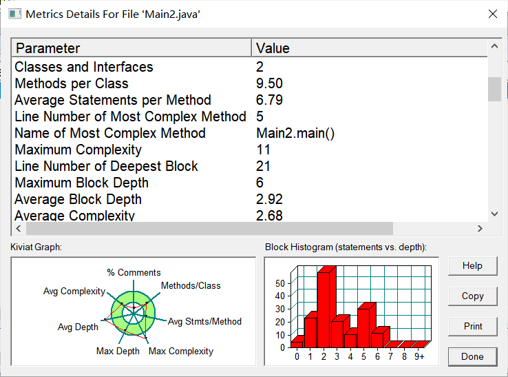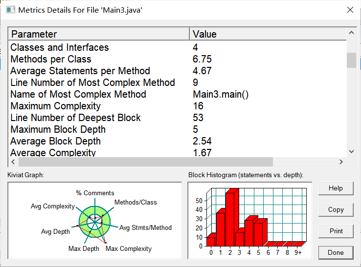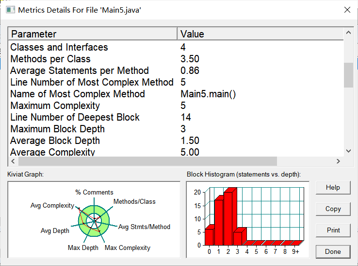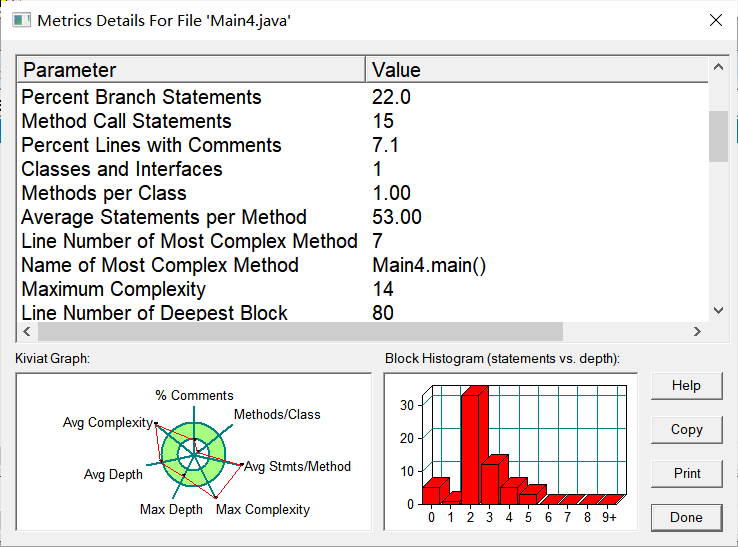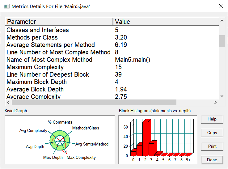 在这里我们看到最大圈复杂度为15,也是符合预期结果,我感觉能再降低其单位的方法就是在main方法中了。
